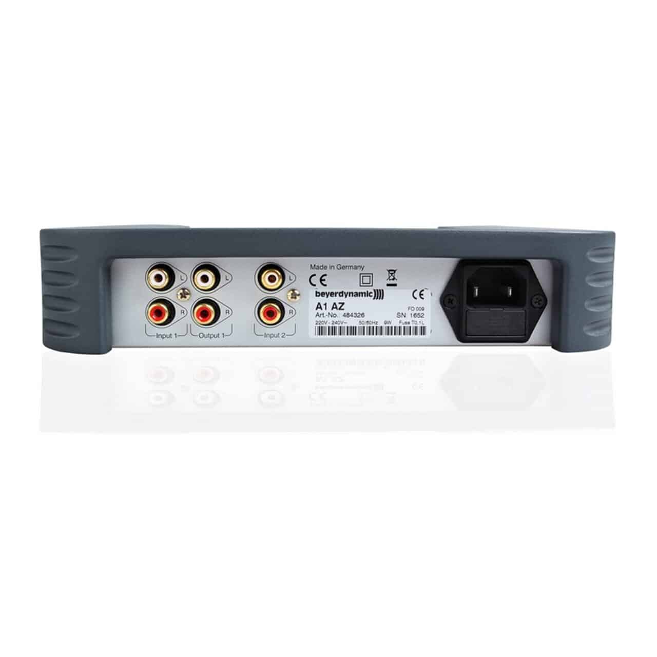 El amplificador de auriculares Beyerdynamic A 1 ha sido desarrollado para operar auriculares con una impedancia nominal de 30 a 600 ohmios. Proporciona una excelente calidad de audio con un alto volumen y una fuerte respuesta de bajos. El diseño especial del circuito presenta una reproducción de sonido asombrosamente natural con una excelente resolución y espacialidad. Todo el circuito es capaz de transmitir 96 kHz permitiendo la transmisión de toda la respuesta de frecuencia de un audio SA-CD o DVD. Gracias a un relé controlado por microprocesador, se pueden seleccionar silenciosamente dos fuentes de sonido estéreo de alta calidad. El control de volumen esta hecho de aluminio solido con un potenciómetro ALPS de alto grado en su interior. Las conexiones RCA chapadas en oro en la parte trasera permiten la conexión de las fuentes de audio y proporcionan una transmisión de señal sin perdidas. Un transformador de núcleo toroidal de grandes dimensiones asegura una alta fidelidad de impulso y dinámica. La combinación de componentes de alta calidad seleccionados permite que incluso los auriculares de mas alta impedancia se manejen sin problemas en toda la gama de frecuencias. La alta impedancia en la salida de los auriculares asegura que el rango de control del potenciómetro de volumen sea perfecto también para los auriculares de baja impedancia. Una entrada se conecta pasivamente con la salida de linea del A1 para hacer un bucle a través de las señales entrantes incluso cuando el A1 esta en modo de espera. Dos LEDs azules en la parte frontal muestran la entrada de señal activa, otro LED multicolor muestra el estado de funcionamiento (en espera o activo).