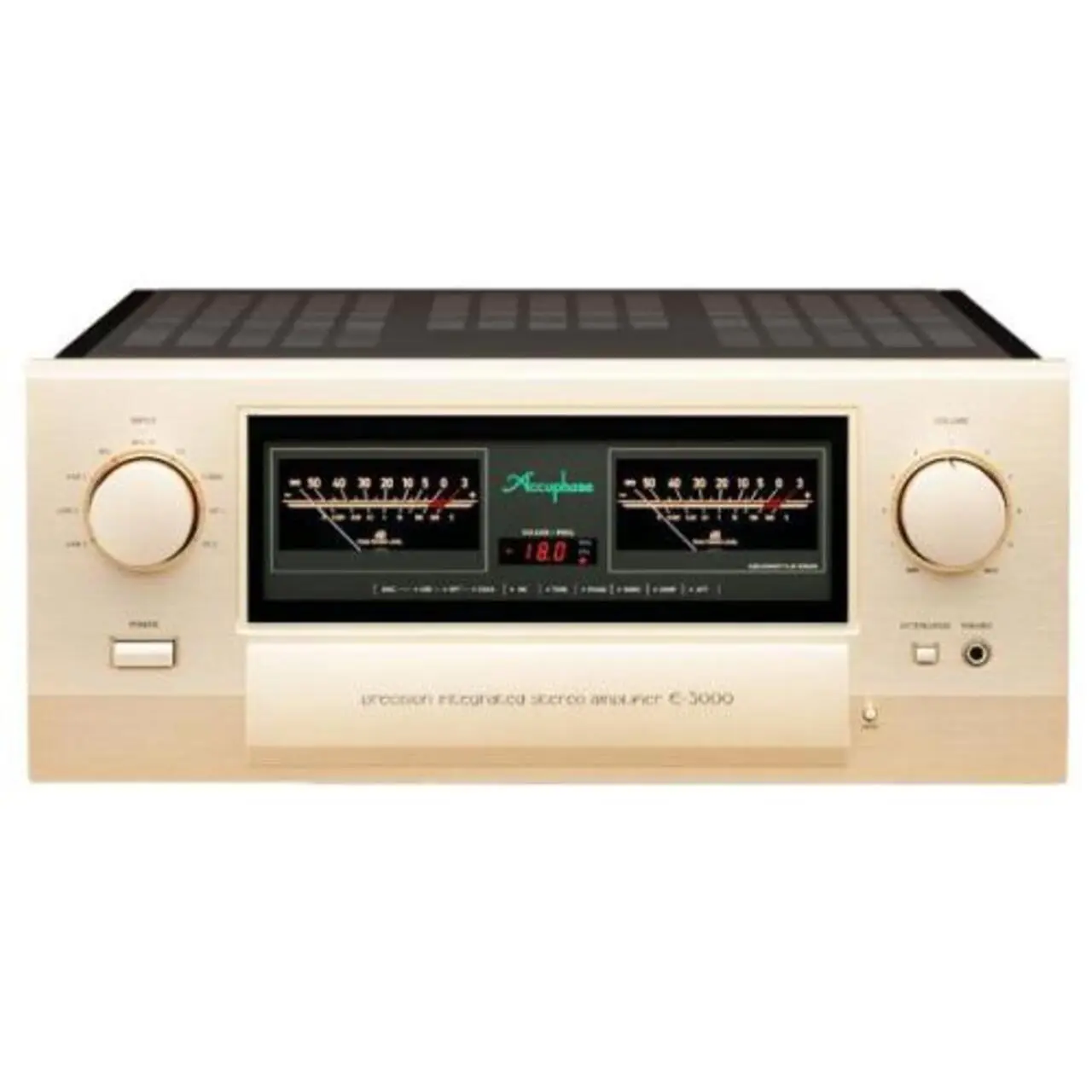 Accuphase E-5000 amplificador integrado estéreo | Potencia de salida: 2x 240 W (8 ohmios); 2x 320 W (4 ohmios) | Ajuste de fase individual para cada entrada | Control de volumen equilibrado tipo AAVA | Control de balance izquierdo/derecho mediante AAVA balanceado | Ganancia: 28 dB